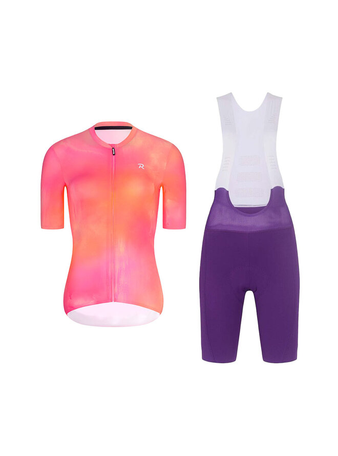 Cyklistický krátky dres a krátke nohavice - COSMA - fialová/oranžová/ružová