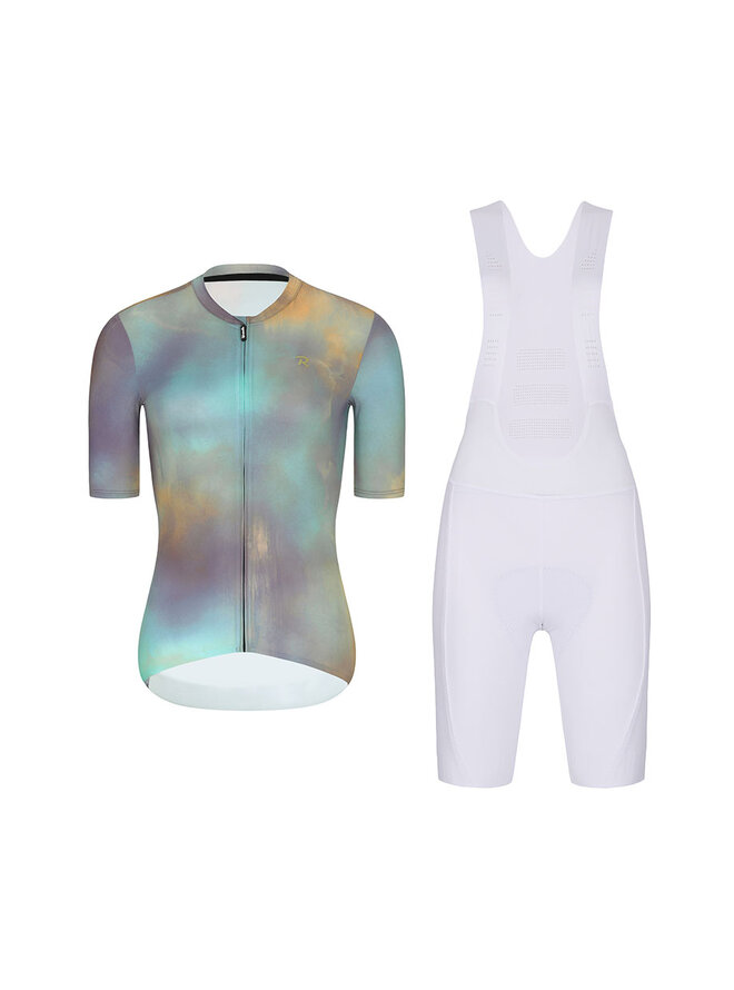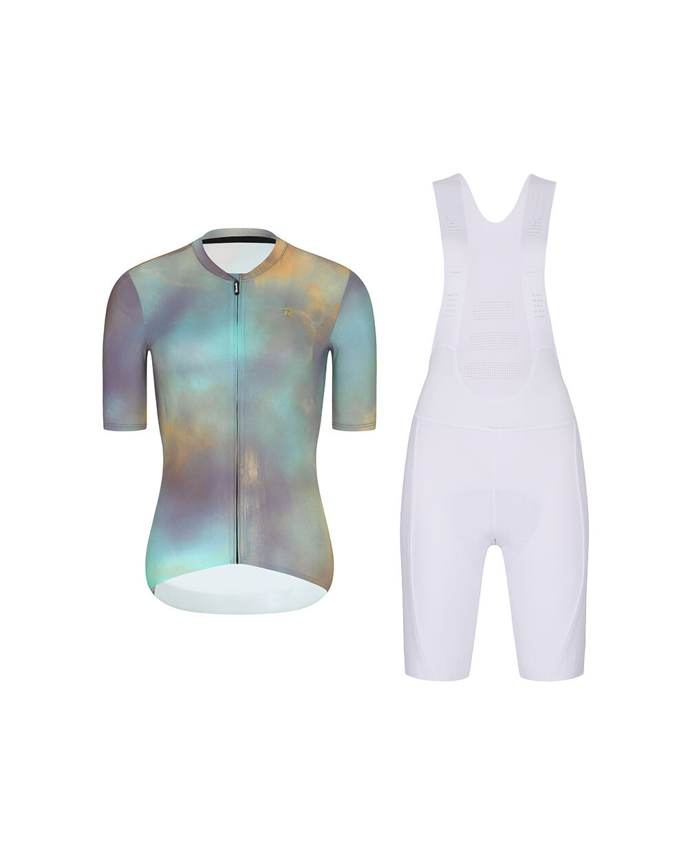 Cyklistický krátky dres a krátke nohavice - COSMA - biela/fialová/zlatá