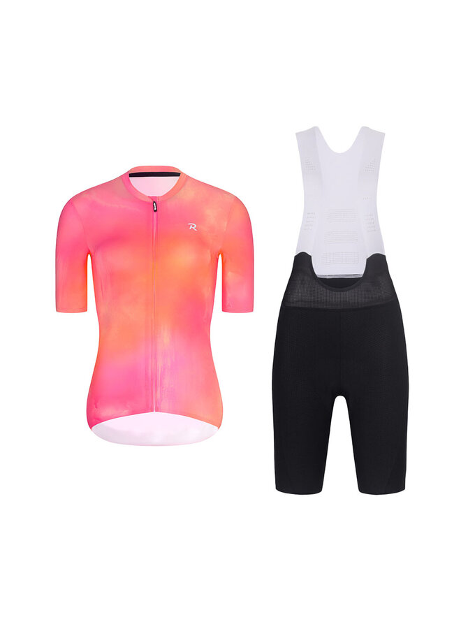 Cyklistický krátky dres a krátke nohavice - COSMA - čierna/oranžová/ružová