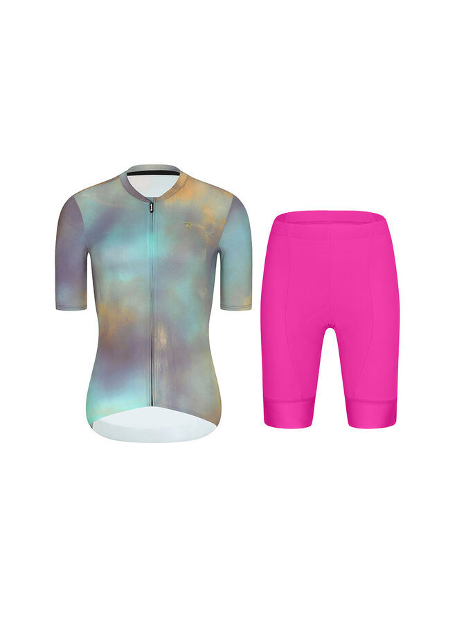 Cyklistický krátky dres a krátke nohavice - COSMA - cyklamenová/fialová/zlatá