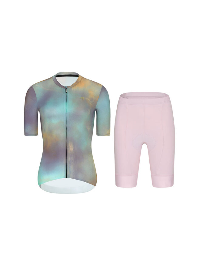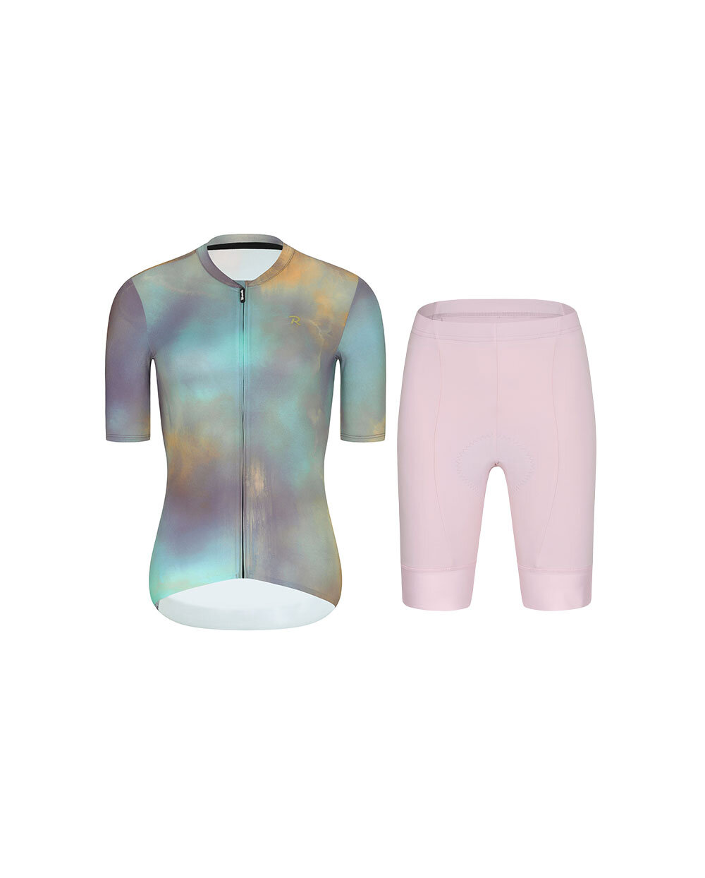 Cyklistický krátky dres a krátke nohavice - COSMA - ružová/fialová/zlatá