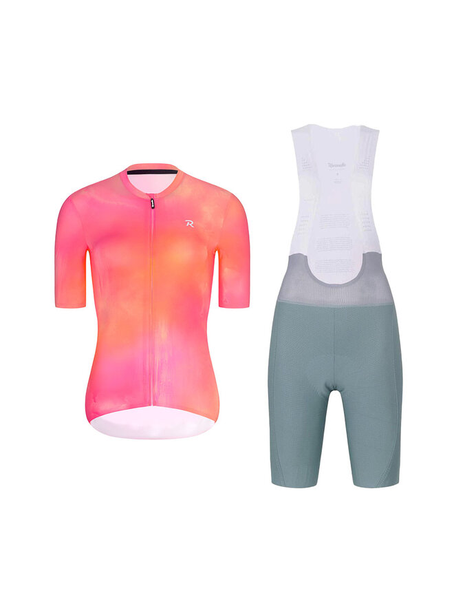 Cyklistický krátky dres a krátke nohavice - COSMA - zelená/oranžová/ružová