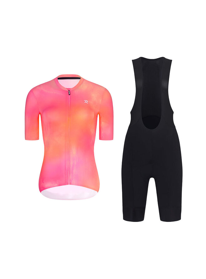 Cyklistický krátky dres a krátke nohavice - COSMA - čierna/oranžová/ružová
