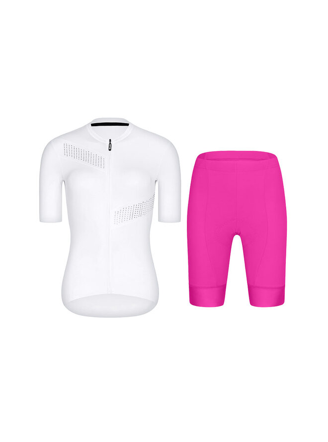Cyklistický krátky dres a krátke nohavice - CRYSTELLE - cyklamenová/biela