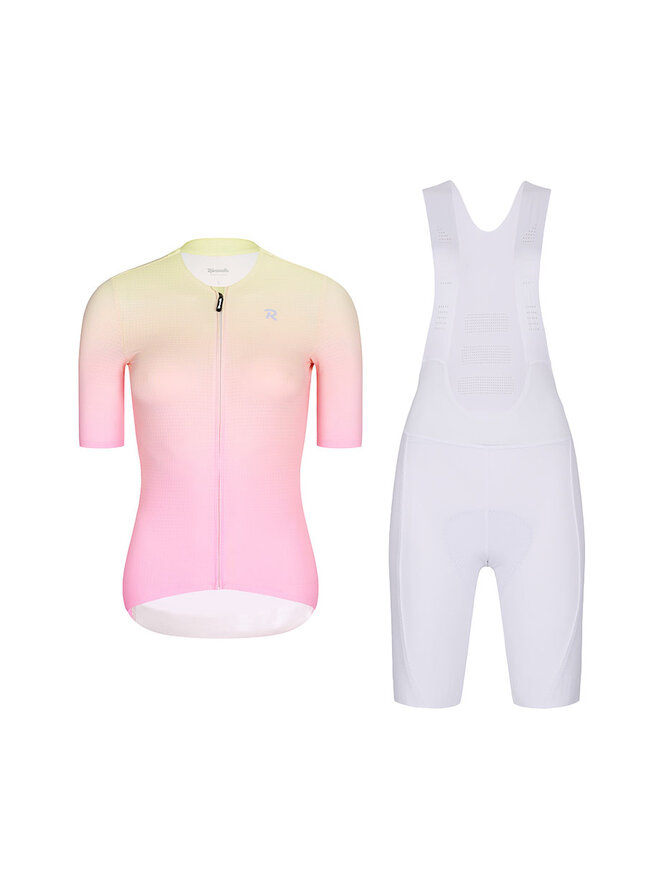 Cyklistický krátky dres a krátke nohavice - ELEVATE - biela/ružová/viacfarebná