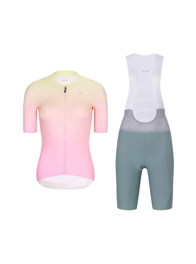 Cyklistický krátky dres a krátke nohavice - ELEVATE - zelená/ružová/viacfarebná