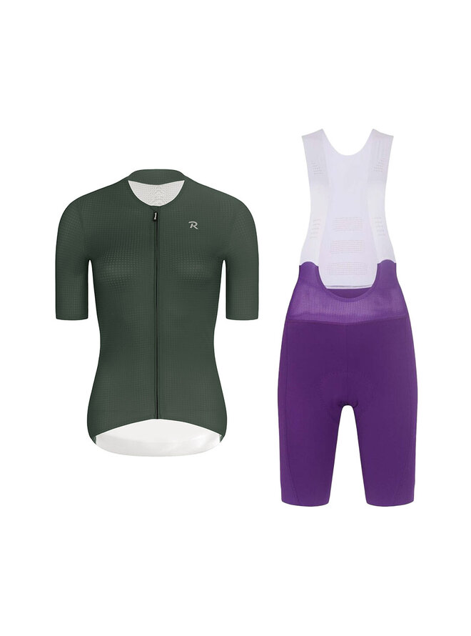Cyklistický krátky dres a krátke nohavice - ELEVATE - fialová/zelená