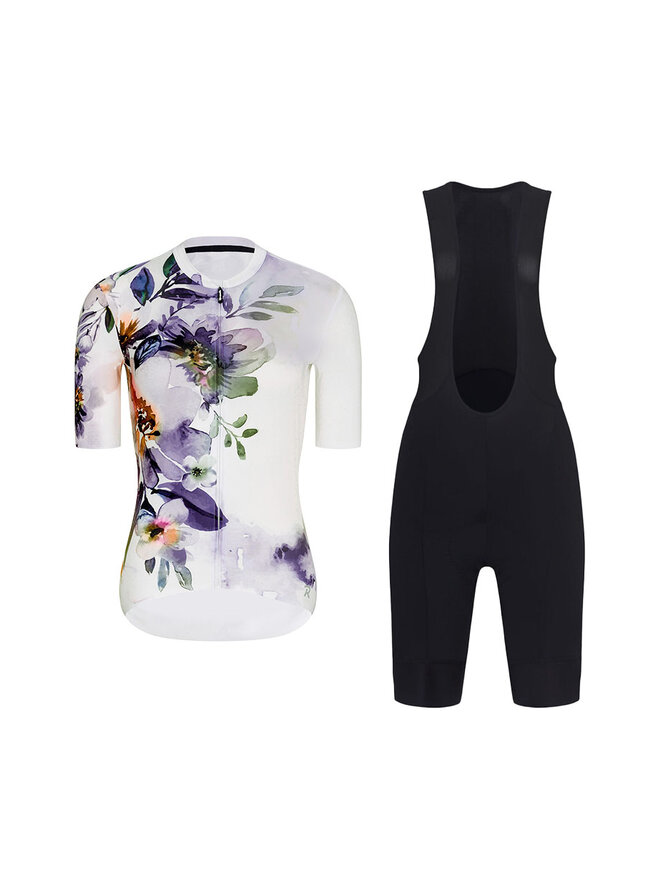 Cyklistický krátky dres a krátke nohavice - FLOWERY LADY - biela/viacfarebná/čierna