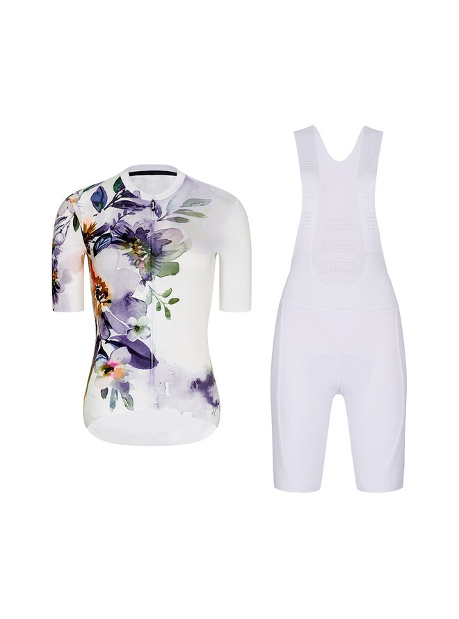 Cyklistický krátky dres a krátke nohavice - FLOWERY LADY - biela/viacfarebná
