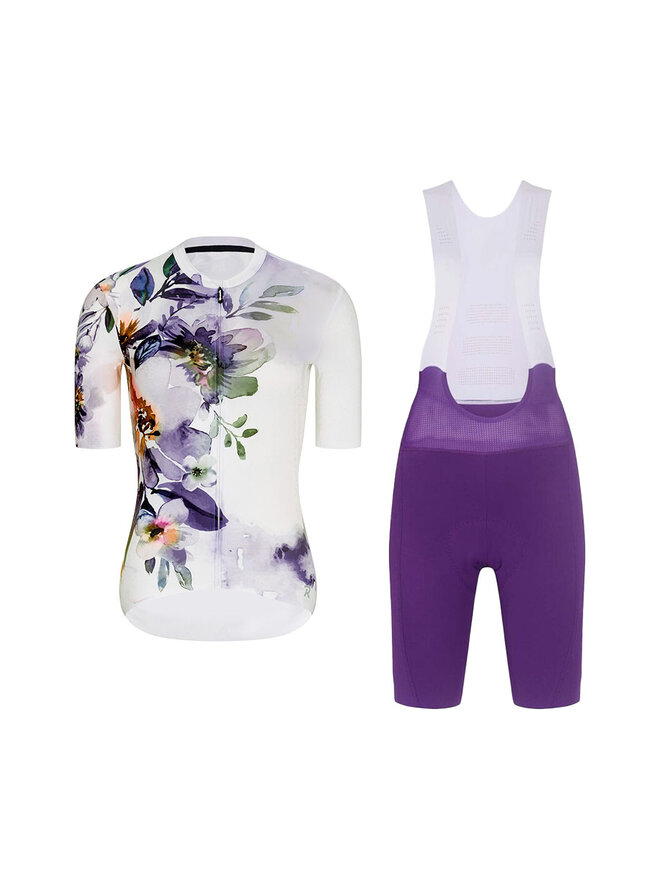 Cyklistický krátky dres a krátke nohavice - FLOWERY LADY - fialová/biela/viacfarebná