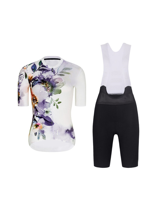 Cyklistický krátky dres a krátke nohavice - FLOWERY LADY - čierna/biela/viacfarebná