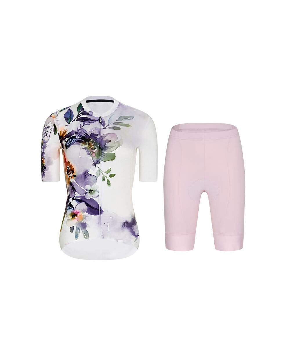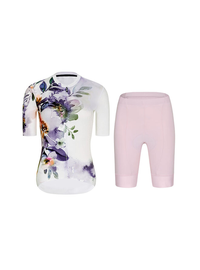 Cyklistický krátky dres a krátke nohavice - FLOWERY LADY - ružová/biela/viacfarebná