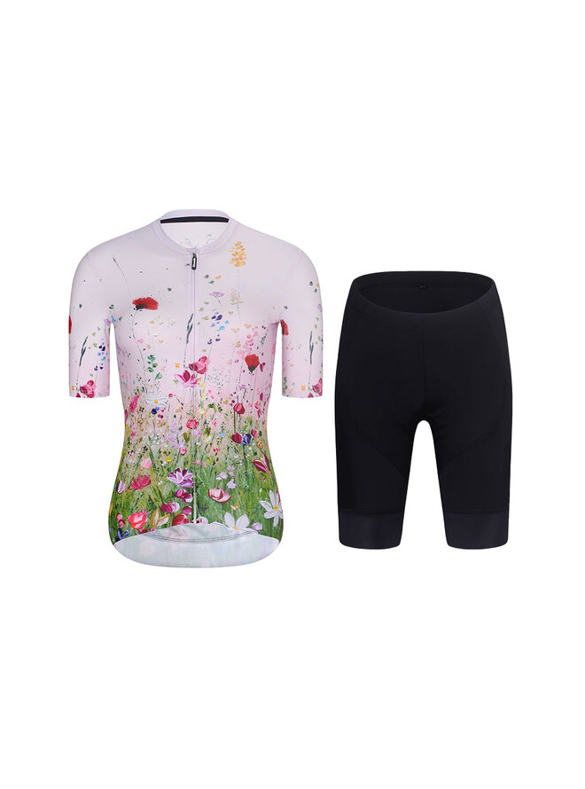 Cyklistický krátky dres a krátke nohavice - IN BLOOM - čierna/ružová/viacfarebná