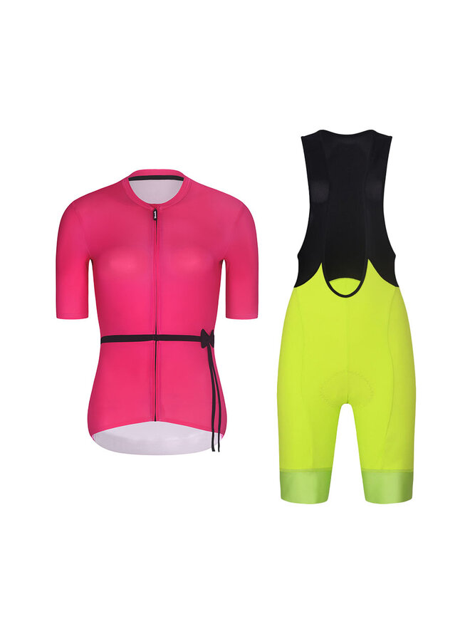 Cyklistický krátky dres a krátke nohavice - LOVELY - žltá/čierna/ružová