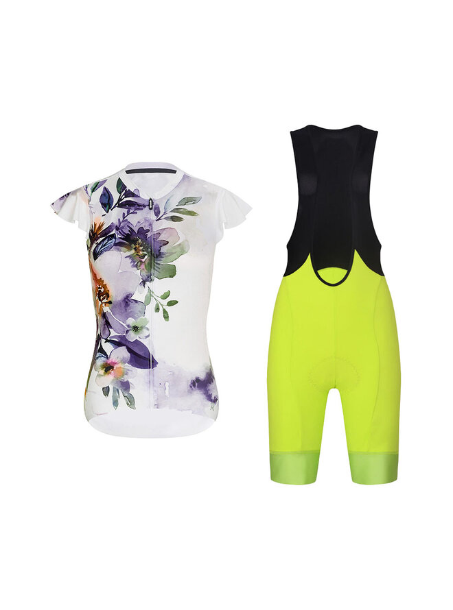 Cyklistický krátky dres a krátke nohavice - MISS FLOWERY - žltá/čierna/biela/viacfarebná