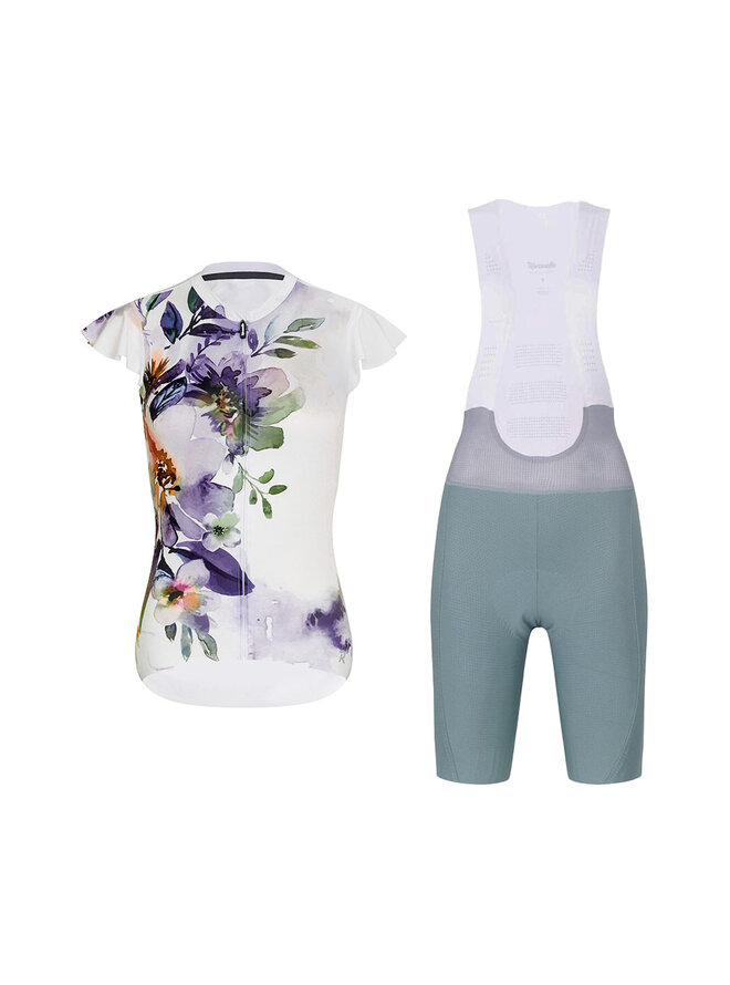 Cyklistický krátky dres a krátke nohavice - MISS FLOWERY - zelená/biela/viacfarebná