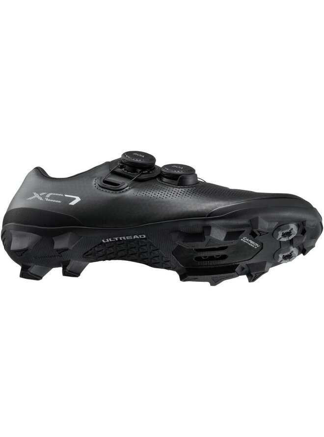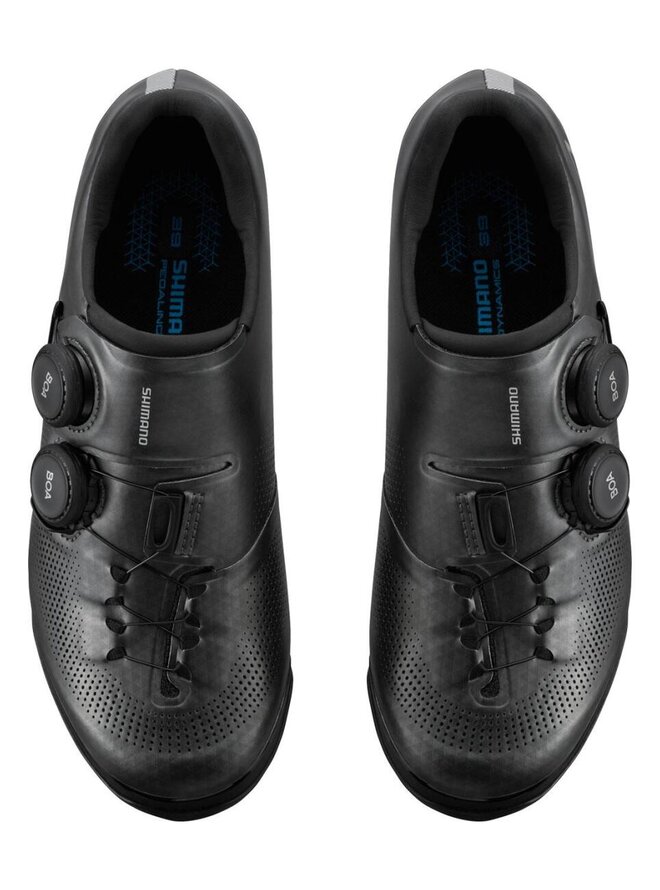 SH-XC703 sú pretekárske dámske XC tretry, ktoré sú mimoriadne pohodlné, ľahké a navrhnuté pre maximálny výkon pri šliapaní za všetkých podmienok. Elegantné, ploché krížové šnurovanie zaisťuje elegantné uchytenie prednej časti chodidla. Systém BOA® s dvoma kompaktnými kolieskami L6Z pre presné prispôsobenie. Výnimočne ľahká a tuhá medzipodrážka vystužená karbónom pre optimálny prenos sily. Ľahká gumená podrážka SHIMANO ULTREAD XC poskytuje bezkonkurenčnú trakciu pri zdolávaní náročného terénu. Špeciálny dámsky tvar kopyta pre maximálne pohodlie. Kompatibilné so zarážkami SPD. Hmotnosť od 644g (č.43). Odporúčame odmerať chodidlo a objednať veľkosť podľa veľkostnej tabuľky - zväčša je potrebné objednať o číslo väčšiu veľkosť než štandardne nosíte.Detaily